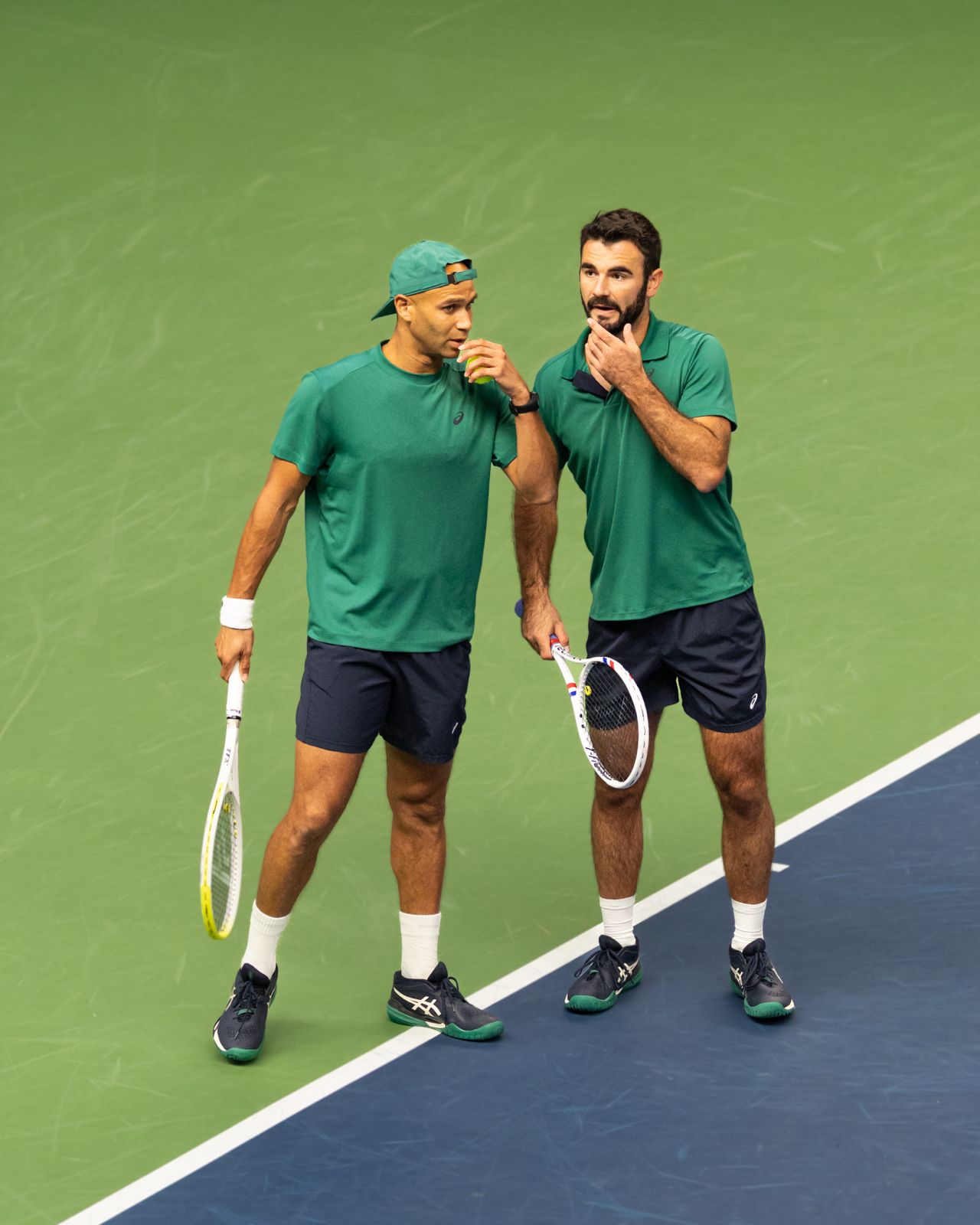 Kort samtal mellan poäng – ibland med handen över munnen. Diskreta handtecken bakom ryggen (serveinstruktioner, nätstrategi).