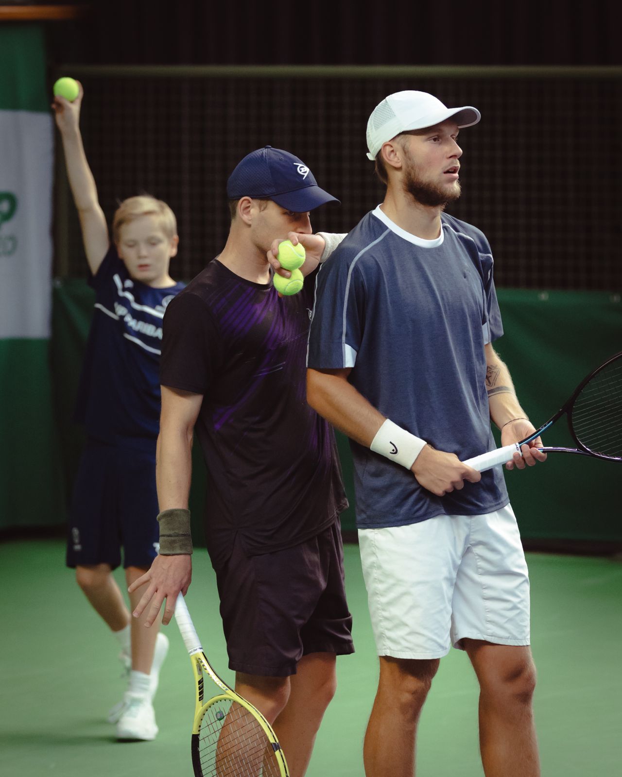 Blicken mot racket (inte partnern). Kort avstånd efter poäng för att samla sig. En partner som tar ledarrollen: “Lugnt, nästa.”